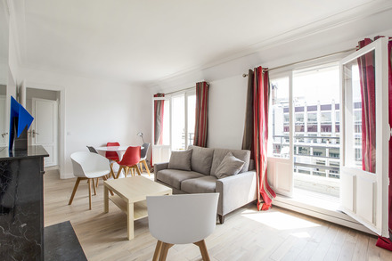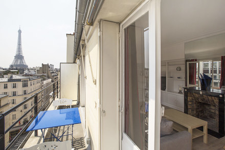 巴黎附傢俱公寓,面積約51m2,位於 7區 榮軍院(Invalides) 街區的 rue de l'Université街。9樓。 該公寓包括1間客廳,1間臥室,獨立廚房,1间淋浴室, 3個陽台。