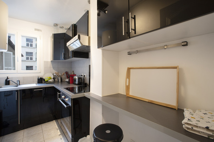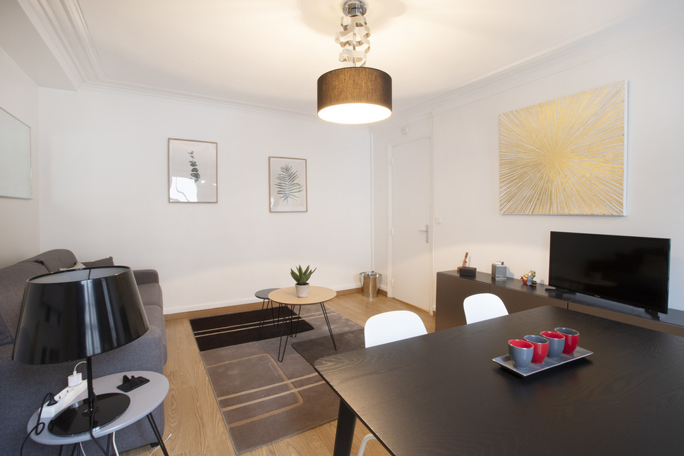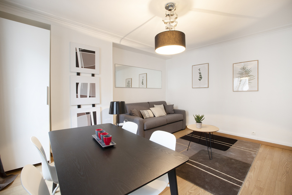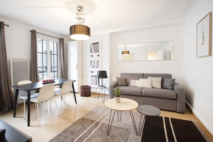 巴黎附傢俱公寓,面積約30m2,位於 9區 巴黎的林蔭大道(Grands Boulevards) 街區的 rue Chauchat街。3樓。 該公寓包括1間客廳,1間臥室,獨立廚房,1间淋浴室。