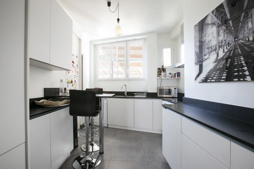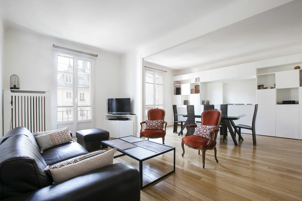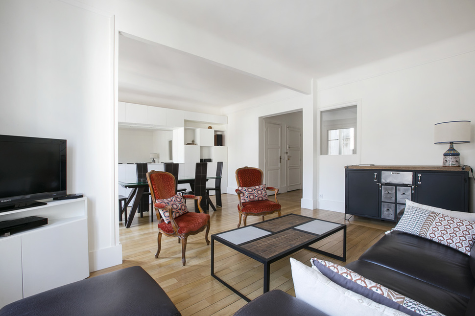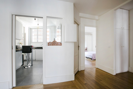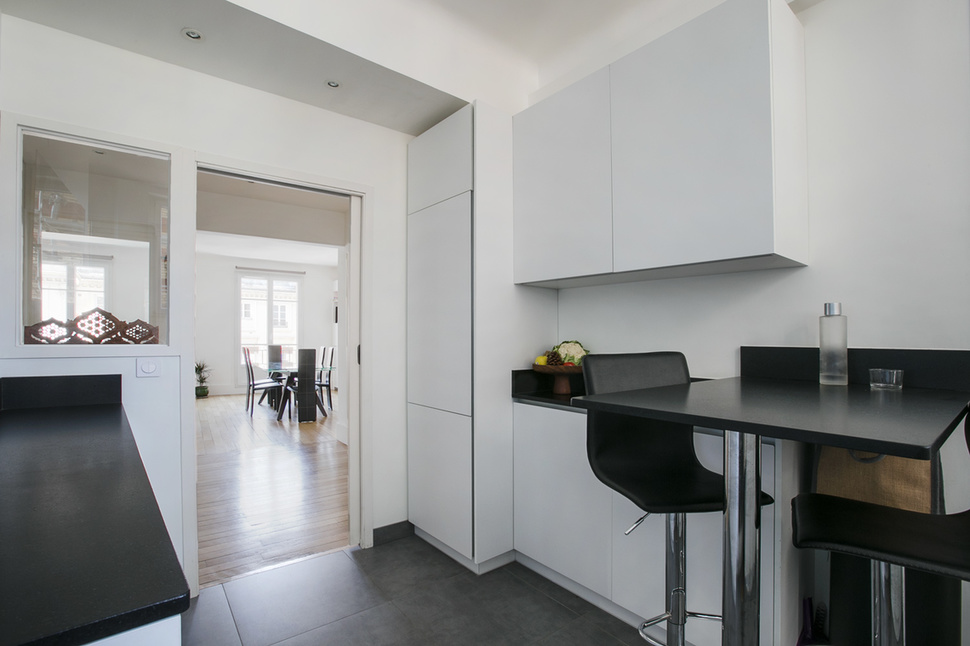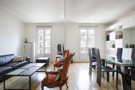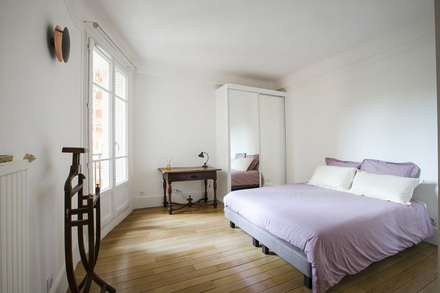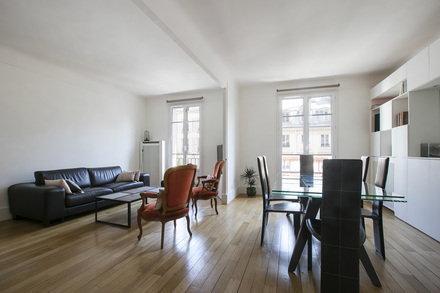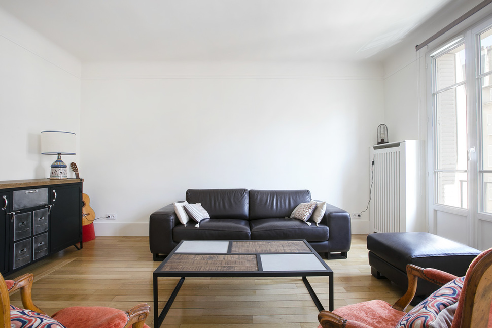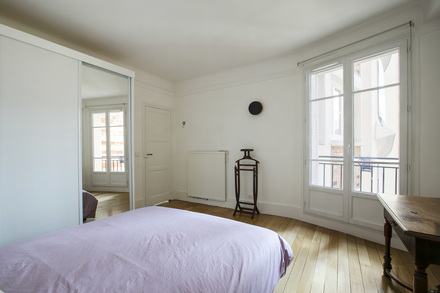 Möblierte Wohnung in Paris von 92M2, Lage: rue Truffaut im 17. Arrondissement von Paris, Batignolles-Viertel, in einem Pariser Wohnanlage 3 OG.