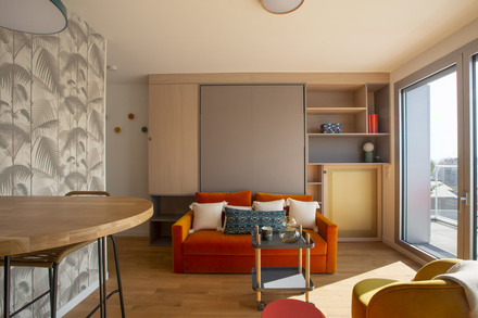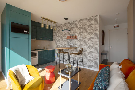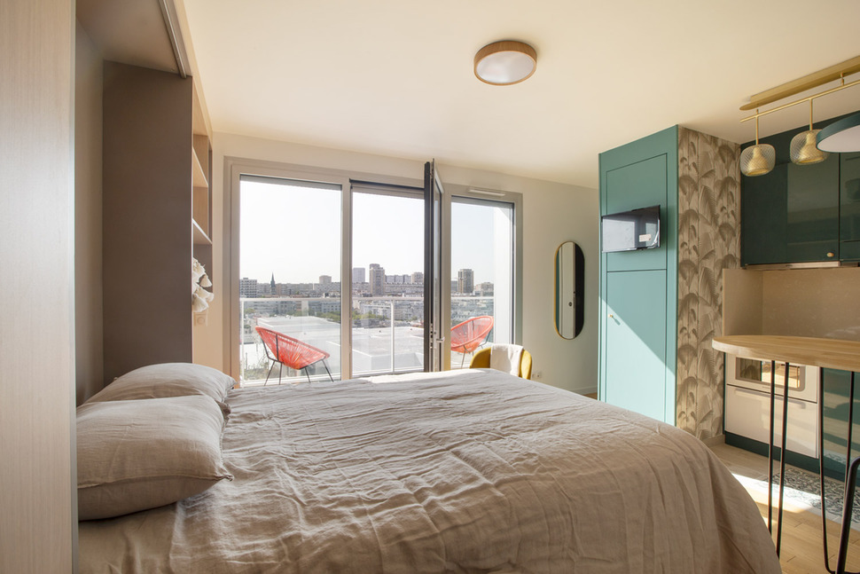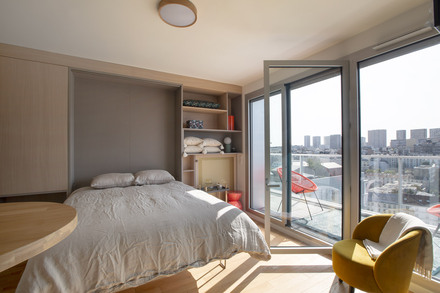 Studio of 25m2 furnished and renovated by the interior architect Laura García, located avenue de France in the 13th arrondissement of Paris - Bibliothèque François Mitterrand district, in a brand new building on the 11th floor with two elevators.