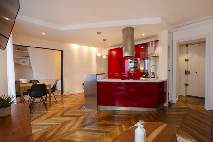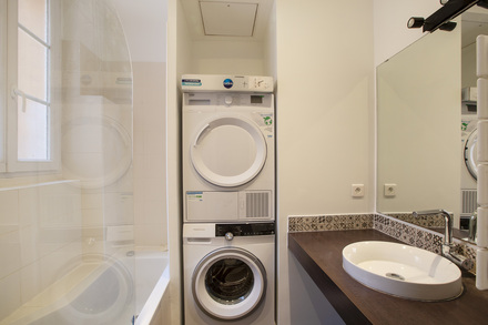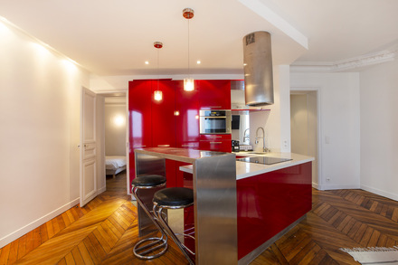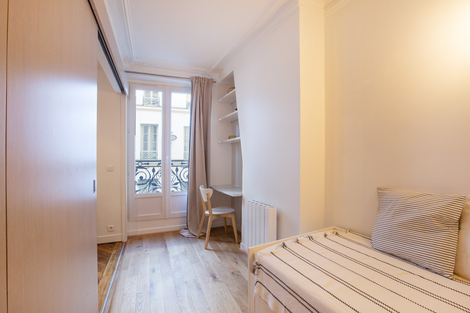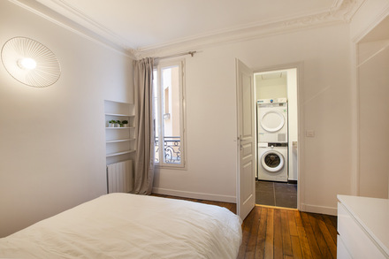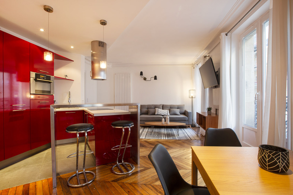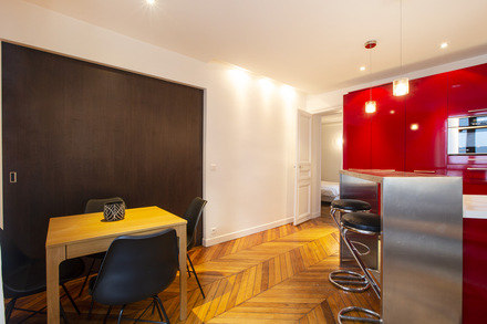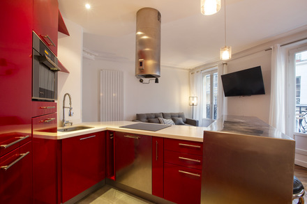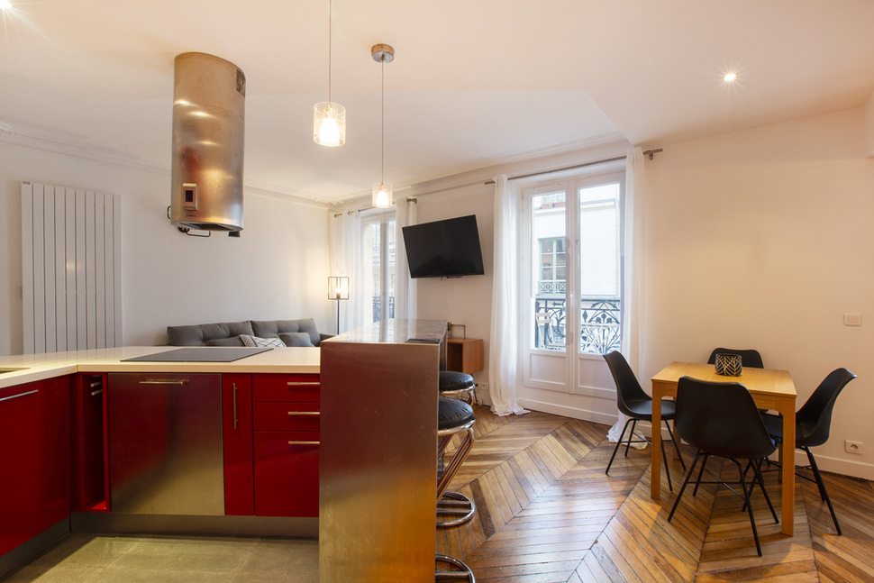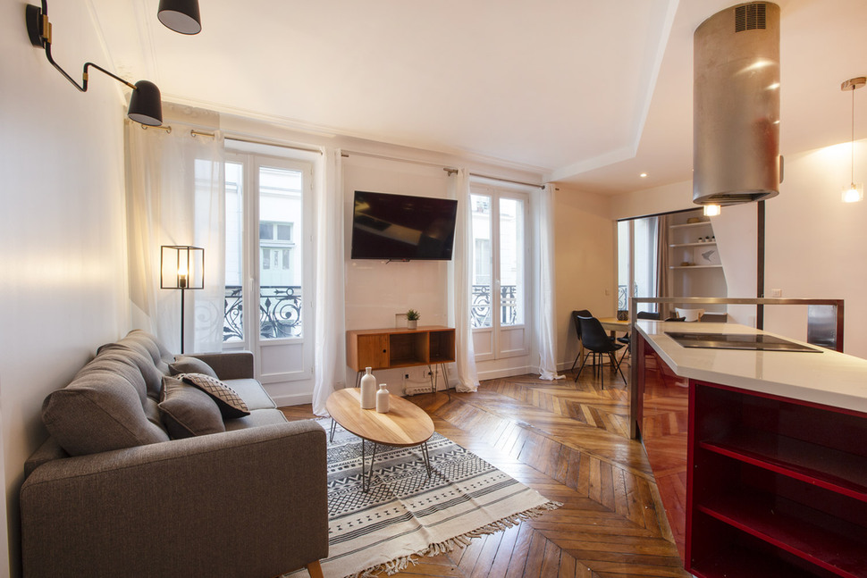 Renovated and furnished apartment of 56m2, located rue Beauregard in the 2nd arrondissement of Paris - Grands Boulevards district, in a building of 1900, on the 2nd floor without elevator.
