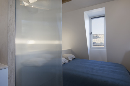 This apartment consists of a very large living room with open kitchen (central island removable), a bedroom with ensuite shower room and separate toilet. Lots of storage space.