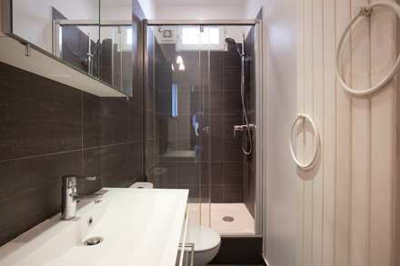 This apartment consists of a living room, a bedroom, a shower room with toilet and a kitchen. The shower room is accessible from the bedroom and hallway. Very bright and quiet.