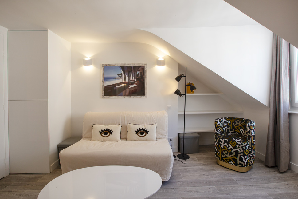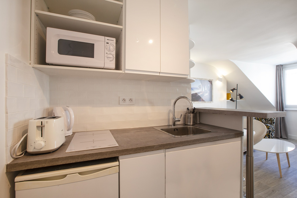 15 sq. m. furnished studio on Rue Saint Dominique in the Invalides district of the 7th arrondissement - Paris. Living room, open-plan kitchen, bathroom with shower stall. Heating by mixte heaters.