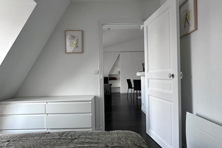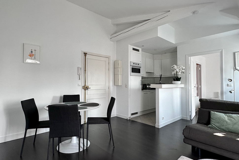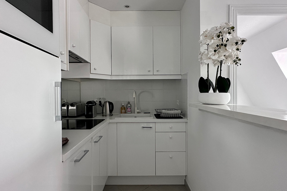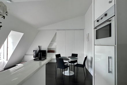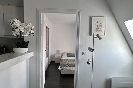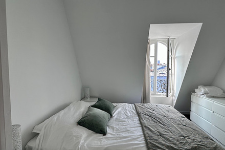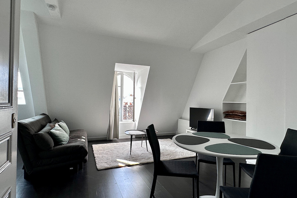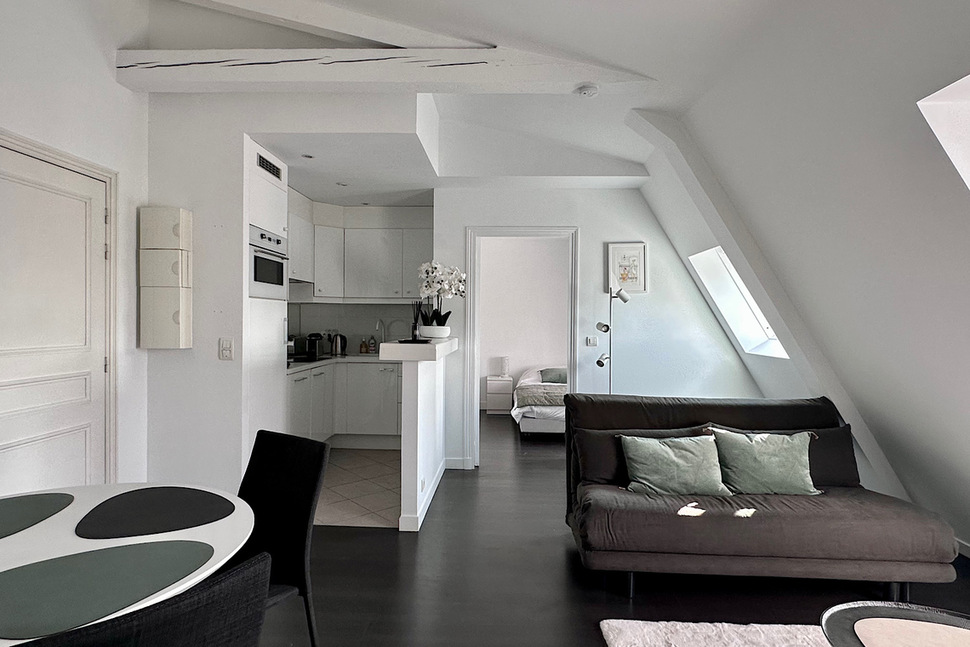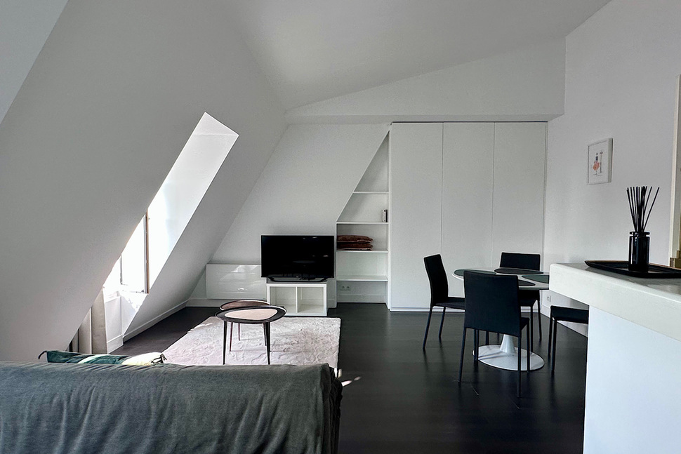 The apartment offers an unobstructed view of the rooftops and iconic landmarks of Paris, providing a unique and enchanting setting. This luxurious pied-à-terre is perfectly suited for a single person or an expatriate couple in search of exceptional accommodation.