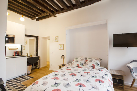 巴黎带家具公寓,面积约30m2,位于 3区 玛黑区(Marais) 街区的 rue du Temple街。3楼。该公寓包括 1 间客厅, 开放式厨房,1间淋浴室。