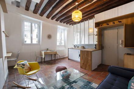 巴黎带家具公寓,面积约31m2,位于 3区 玛黑区(Marais) 街区的 rue Beaubourg街。5楼。该公寓包括 1 间客厅, 开放式厨房,1间淋浴室。