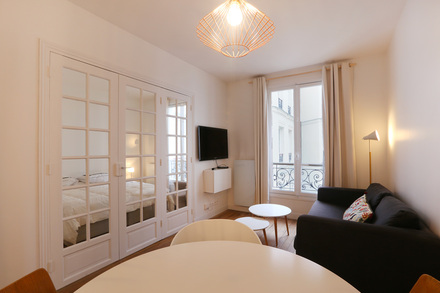 巴黎带家具公寓,面积约32m2,Levallois-Perret区 rue Voltaire街。4楼。该公寓包括 1 间客厅,1间卧室, 独立厨房,1间淋浴室。