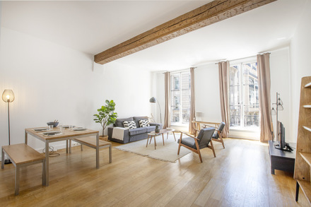 巴黎带家具公寓,面积约83m2,位于 2区 巴黎的林荫大道(Grands Boulevards) 街区的 rue Montmartre街。3楼。该公寓包括 1 间客厅,1间书房,1间卧室, 开放式厨房,,独立卫生间。