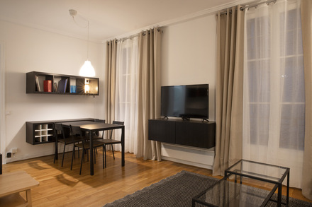 巴黎带家具公寓,面积约36m2,位于 9区 巴黎的林荫大道(Grands Boulevards) 街区的 rue Bergère街。2楼。该公寓包括 1 间客厅,1间卧室, 独立厨房,1间淋浴室,独立卫生间。