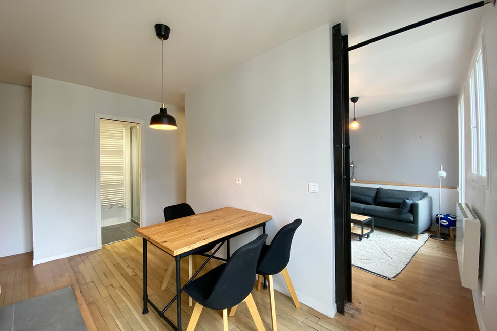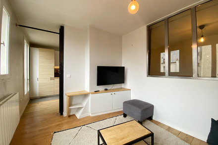 巴黎带家具公寓,面积约39m2,位于 10区 圣马丁运河(Le canal Saint Martin) 街区的 rue Philippe de Girard街。6楼。该公寓包括 1 间客厅,1间卧室, 明厨亮灶,1间淋浴室,独立卫生间。