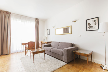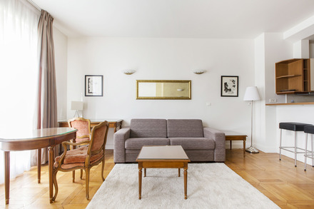 巴黎带家具公寓,面积约43m2,位于 8区 香榭丽舍(Champs Elysées) 街区的 avenue Montaigne街。6楼。该公寓包括 1 间客厅,1间卧室, 开放式厨房,1间盆浴室,独立卫生间。