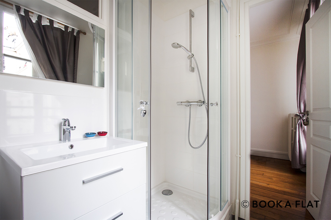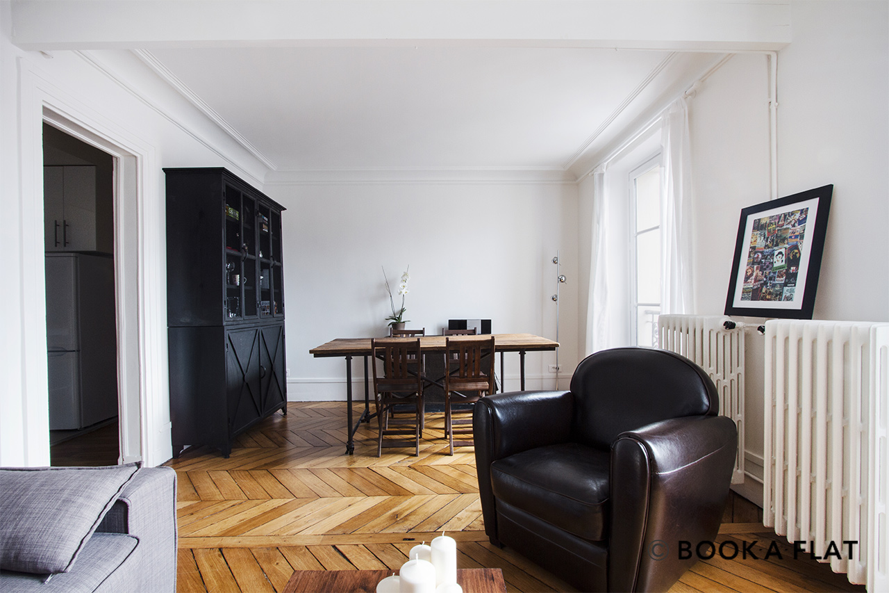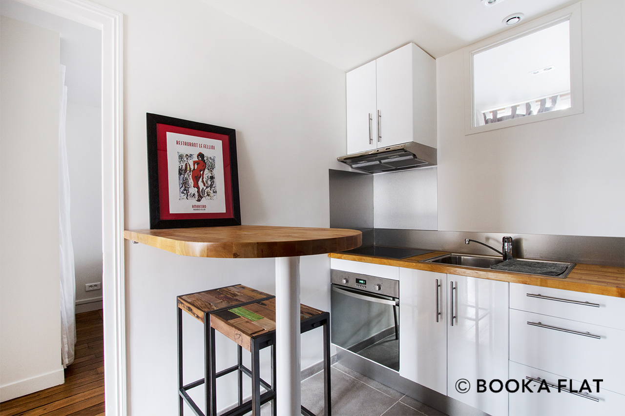 巴黎附傢俱公寓,面積約43m2, Neuilly-sur-Seine區 place du Marché街。4樓。 該公寓包括1間客廳,1間臥室,開放式廚房,1间淋浴室。