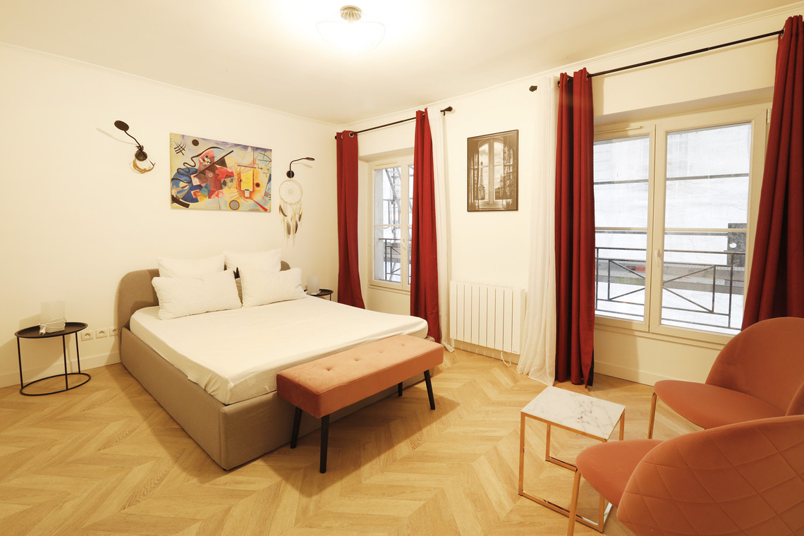 巴黎附傢俱公寓,面積約93m2,位於 2區 羅浮宮(Louvre) 街區的 rue des Petits Champs街。2樓。 該公寓包括1間客廳,3間臥室,獨立廚房,1間盆浴室,1间淋浴室。