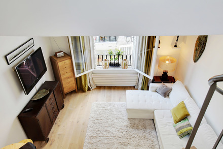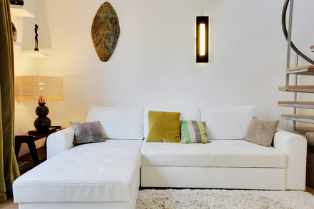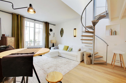This duplex is located in a pretty paved dead end in a house composed of several apartments, on the 1st floor without elevator.
