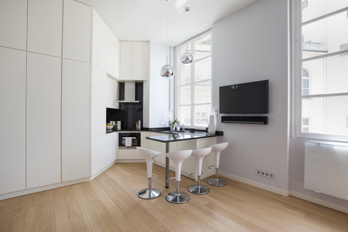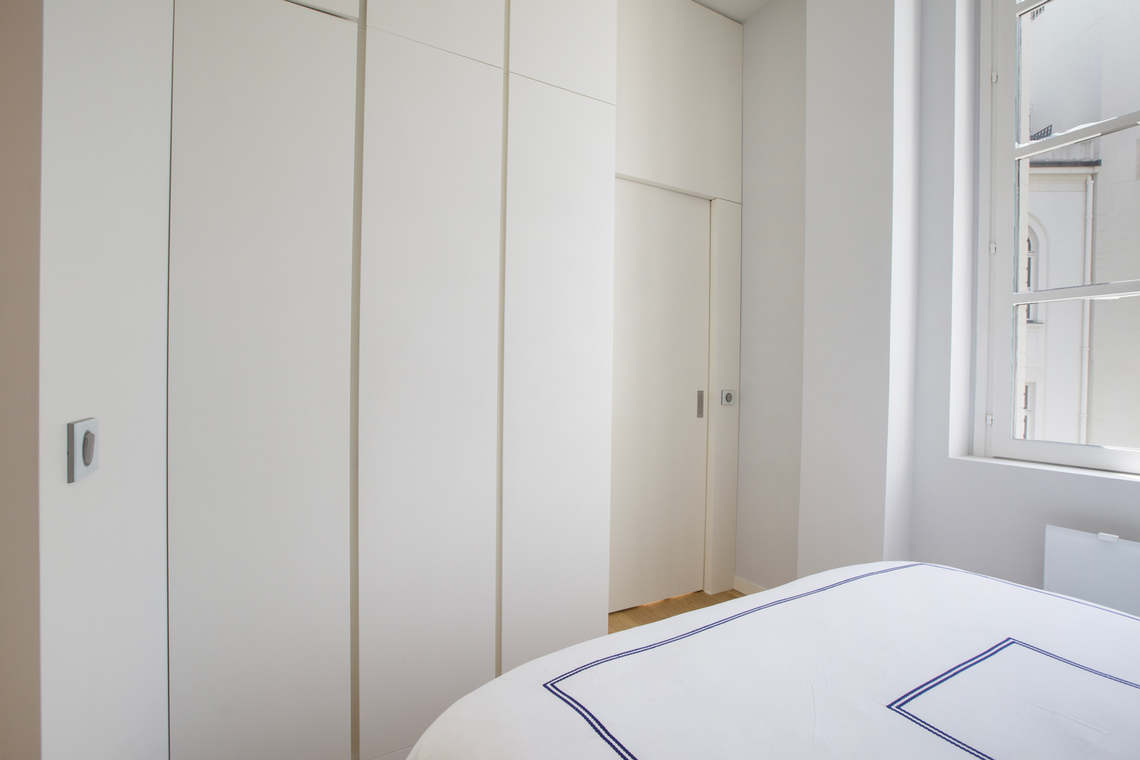 L'appartement offre aussi de nombreux rangements, et la chambre dispose d'un lit coffre pratique pour un gain d'espace supplémentaire.