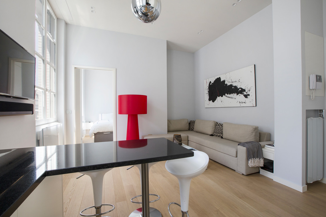 Le charme de cet appartement repose sur son beau mobilier et sa luminosité. Il est composé d'un salon, d'une chambre, d'une cuisine américaine et d'une salle de douche. De plus, il bénéficie d'un environnement très calme, sans vis-à-vis, donnant sur une charmante cour/jardin.