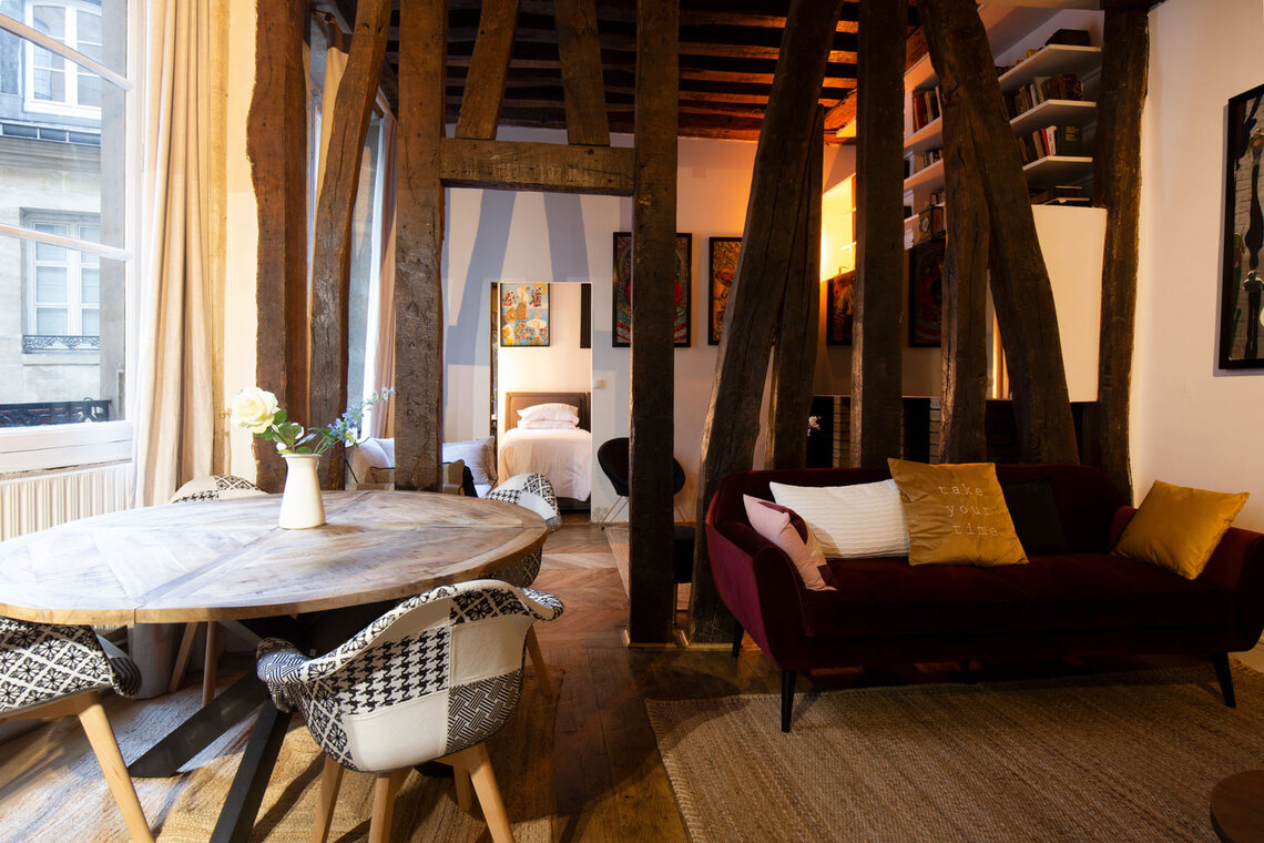 Très bel appartement meublé, entièrement refait à neuf et équipé, d'environ 50m2 Carrez (environ 65m2 au sol), situé rue Bourbon le Château, dans le 6ème arrondissement de Paris - quartier Saint-Germain-des-Prés.