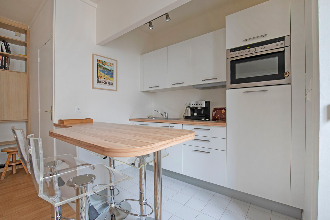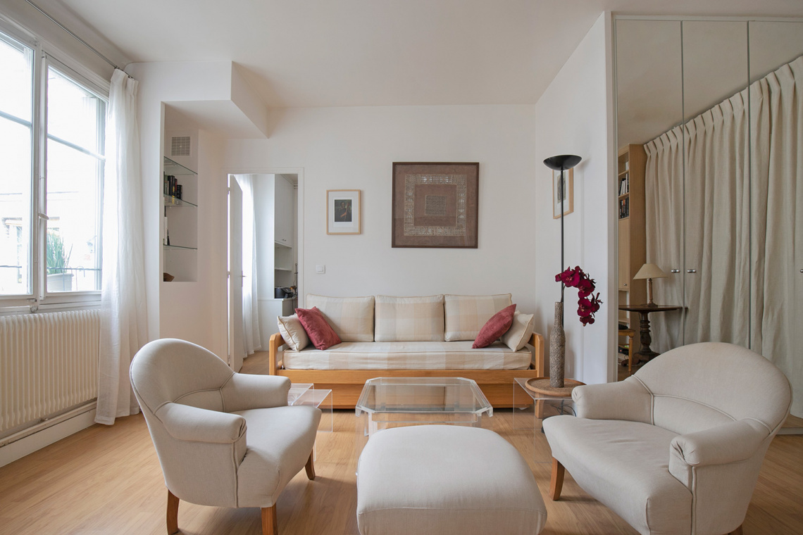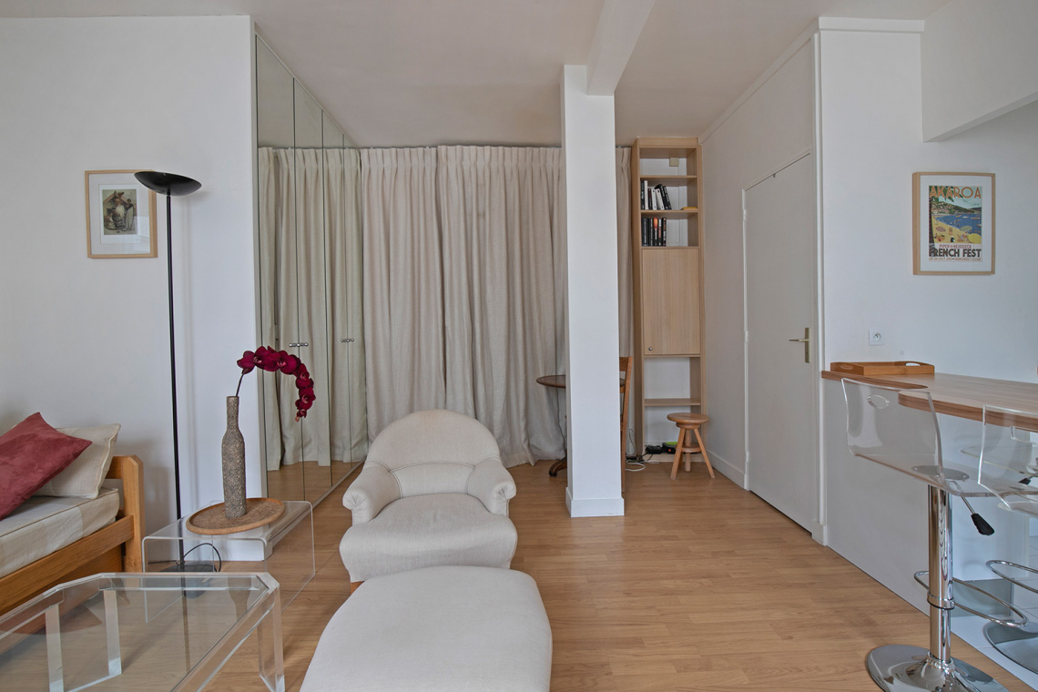 Меблированная квартира в Париже площадью около 44м2, расположенная на rue Tournefort в 5-м округе - квартале Пантеон-Сорбонна в здании класса люкс на 7-м этаже.